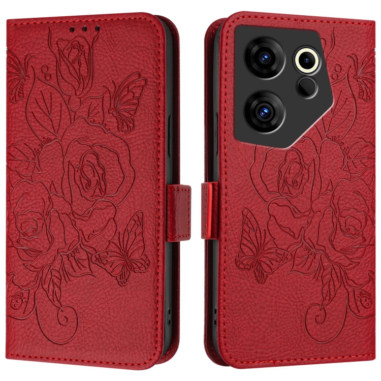 Estuche para Tecno Camon 20 Premier 5G de Cuero Antirrobo RFID con Relieve (Rojo)