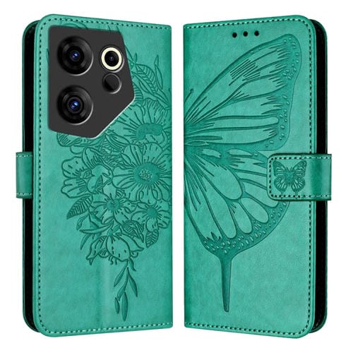 Funda de Cuero para Tecno Camon 20 Premier 5G con Mariposa en Relieve (Verde)