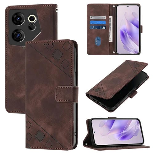 Funda de Cuero para Tecno Camon 20 Premier 5G Skin Feel en Relieve (Marrón)
