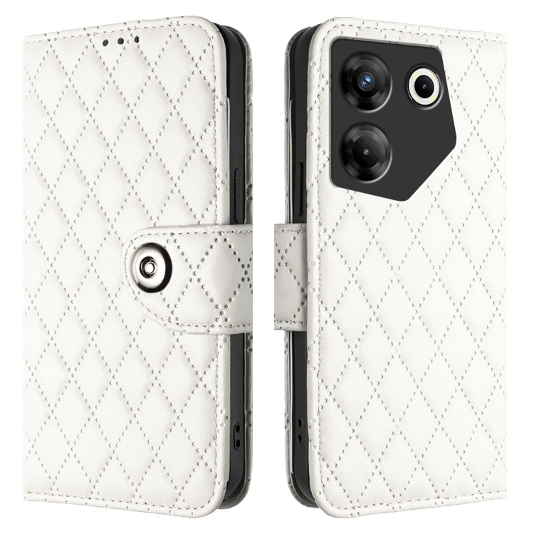 Funda para Tecno Camon 20 Pro 5G de Cuero con Tapa Textura Romboidal y Cordón (Blanco)