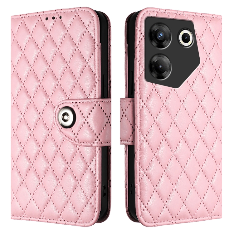 Funda para Tecno Camon 20 Pro 5G de Cuero con Tapa, Textura Romboidal y Cordón (Rosa)