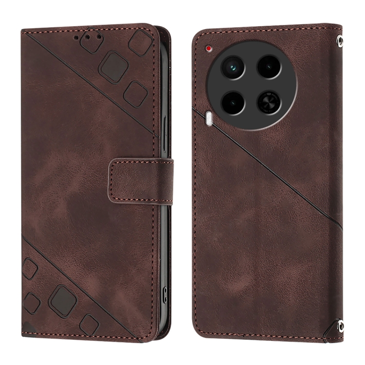Funda de Cuero para Tecno Camon 30 4G y 5G Skin Feel en Relieve (Marrón)
