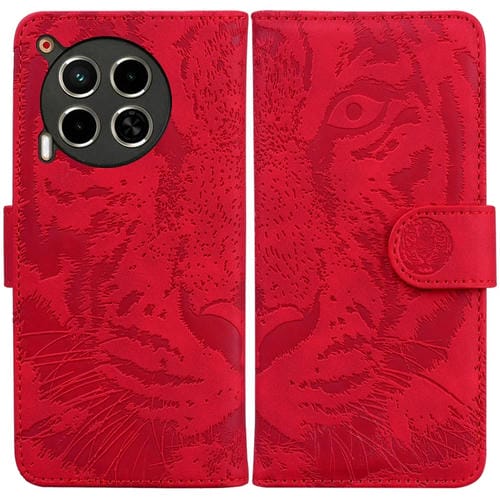Funda de Cuero con Tapa para Tecno Camon 30 4G y 5G Tiger Embossed Pattern (Rojo)