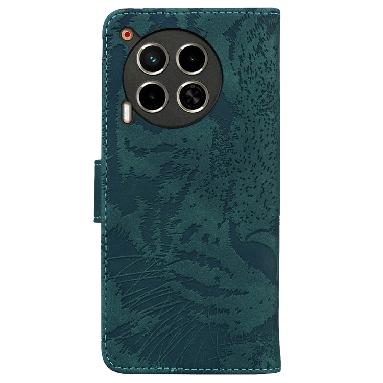 Funda de Cuero con Tapa para Tecno Camon 30 4G/5G Tiger Embossed Pattern (Verde)