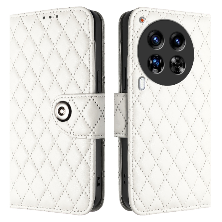Funda de Cuero para Tecno Camon 30 Premier 5G con Tapa, Textura Rómbica y Cordón (Blanco)