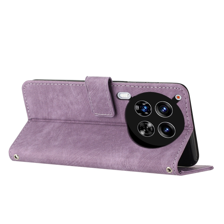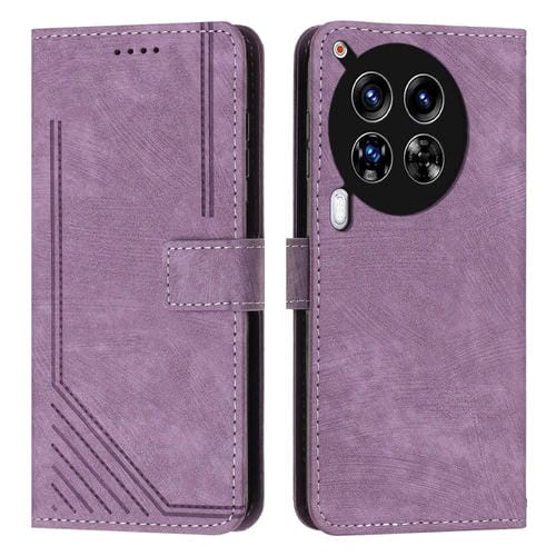 Funda de Cuero para Tecno Camon 30 Premier Skin Feel con Patrón de Rayas y Cordón Largo (Púrpura)