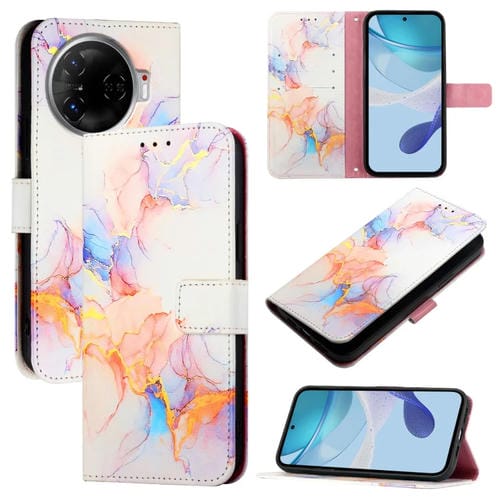 Funda de Cuero para Tecno Camon 30 Pro 5G Pt003 con Tapa y Patrón Mármol (Galaxy Marble White)