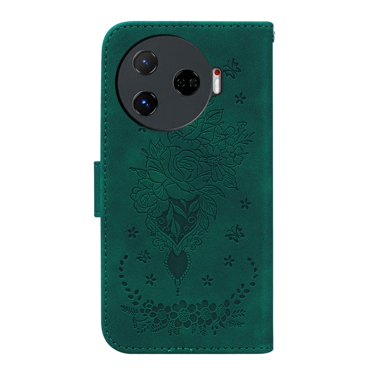 Funda de Cuero para Tecno Camon 30 Pro Butterfly Rose en Relieve (Verde)