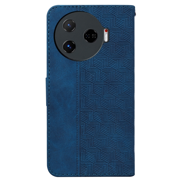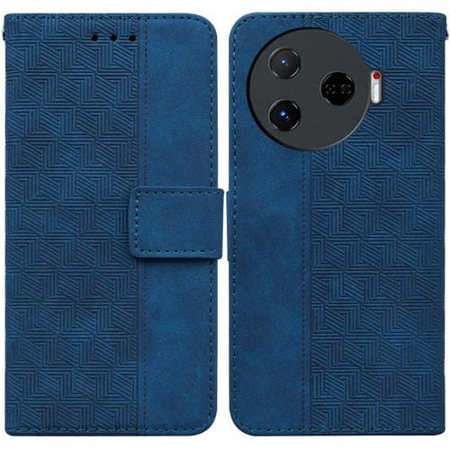 Funda de Cuero para Tecno Camon 30 Pro Cl8 con Relieve Geométrico (Azul)