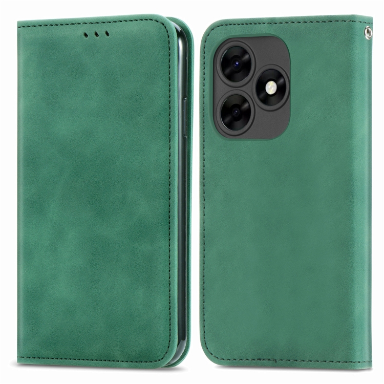 Funda para Tecno Itel S23 de Cuero con Tapa Magnética y Sensación de Piel Retro (Verde)