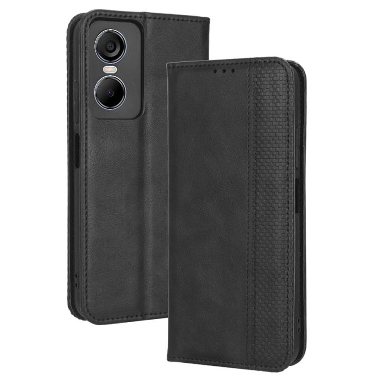 Funda de Cuero para Tecno Pop 6 Pro Be8 con Hebilla Magnética y Textura Retro (Negro)