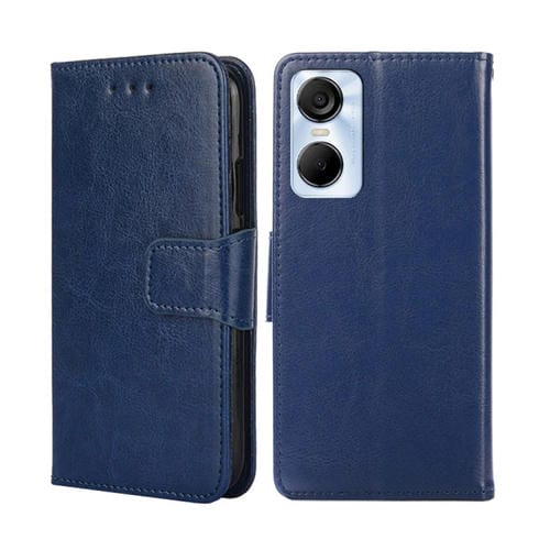 Funda de Cuero para Tecno Pop 6 Pro con Textura de Cristal (Azul Real)