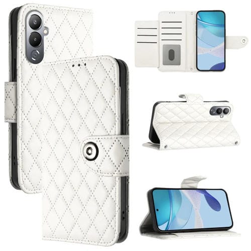 Funda de Cuero para Tecno Pova 4 con Tapa Textura Rombal y Cordón (Blanco)