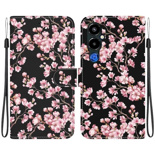 Funda de Cuero para Tecno Pova 4 Pro con Dibujo Coloreado y Textura de Cristal (Flor de Ciruelo)