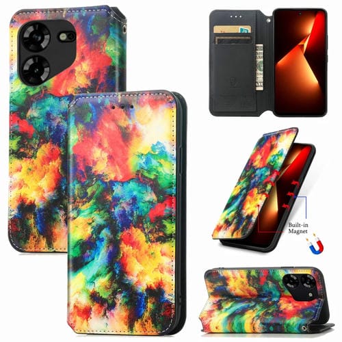 Funda de Cuero Magnética Caseneo para Tecno Pova 5 4G (Nube Colorida)