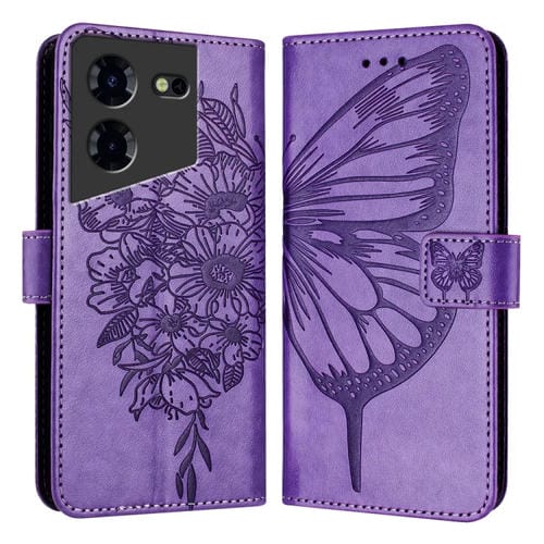 Funda de Cuero para Tecno Pova 5 Pro 5G con Mariposa en Relieve (Púrpura Claro)