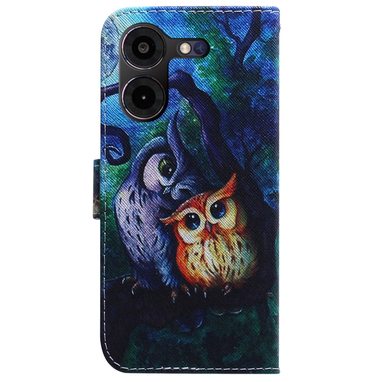 Funda de Cuero para Tecno Pova 5 Pro con Tapa y Dibujo Búho de Pintura al Óleo