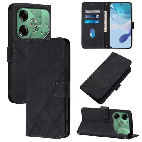 Funda para Tecno Pova 6 4G Crossbody de Cuero con Tapa en Relieve 3D (Negro)