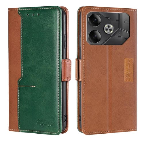 Funda de Cuero para Tecno Pova 6 5G con Hebilla Lateral y Color en Contraste (Marrón Claro + Verde)