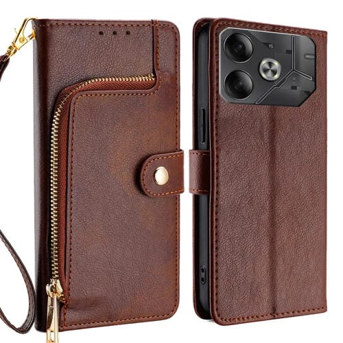 Funda de Cuero para Tecno Pova 6 5G con Bolsa y Cremallera (Marrón)