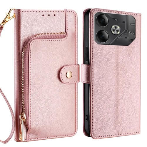 Funda de Cuero para Tecno Pova 6 5G con Bolsa y Cremallera (Oro Rosa)