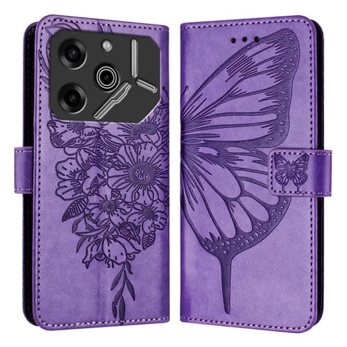 Funda de Cuero para Tecno Pova 6 5G con Mariposa en Relieve (Púrpura Claro)