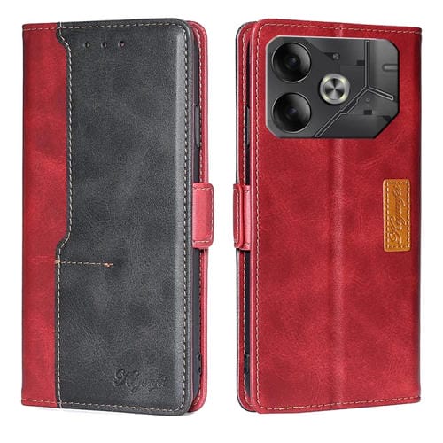 Funda de Cuero para Tecno Pova 6 5G con Hebilla Lateral y Color En Contraste (Rojo + Negro)