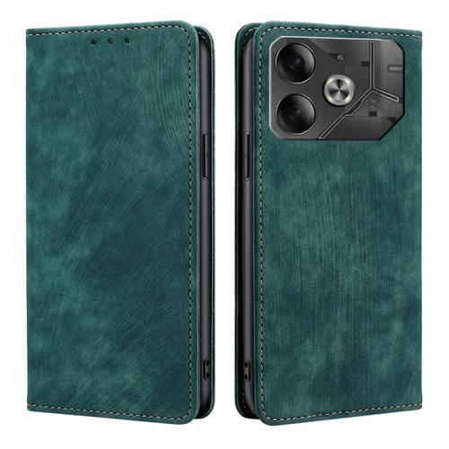 Funda de Cuero Magnética para Tecno Pova 6 5G con Rfid y Cepillo Antirrobo (Verde)