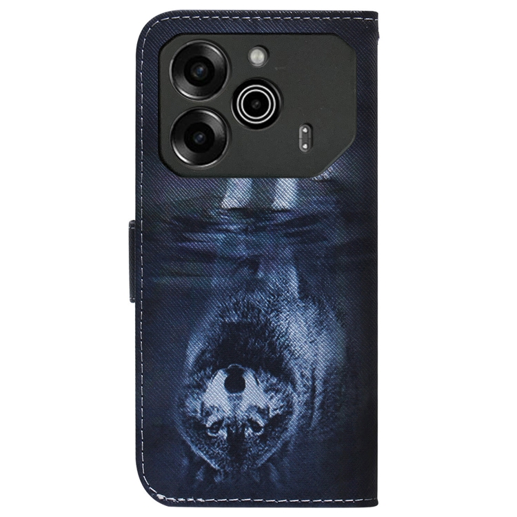 Funda de Cuero con Tapa para Tecno Pova 6 Pro y Pova 6 con Dibujo Coloreado (Lobo y Perro)