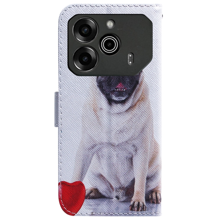 Funda de Cuero con Tapa para Tecno Pova 6 Pro y Pova 6 con Dibujo Pug