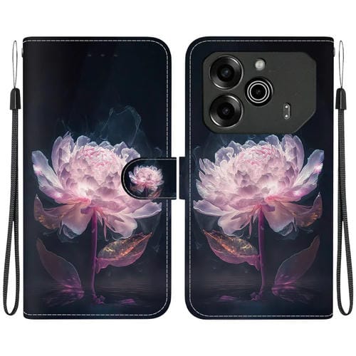 Funda de Cuero para Tecno Pova 6 Pro / Pova 6 con Dibujo Coloreado y Textura de Cristal (Peonía Púrpura)