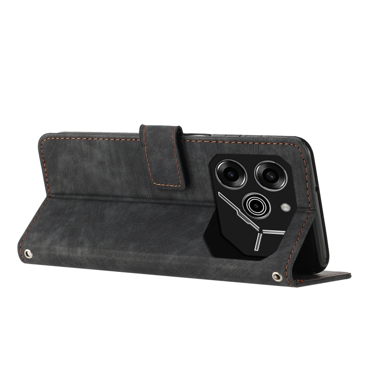 Funda de Cuero para Tecno Pova 6 Pro con Patrón de Rayas y Cordón Largo (Negro)
