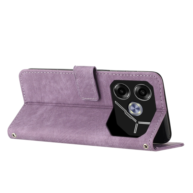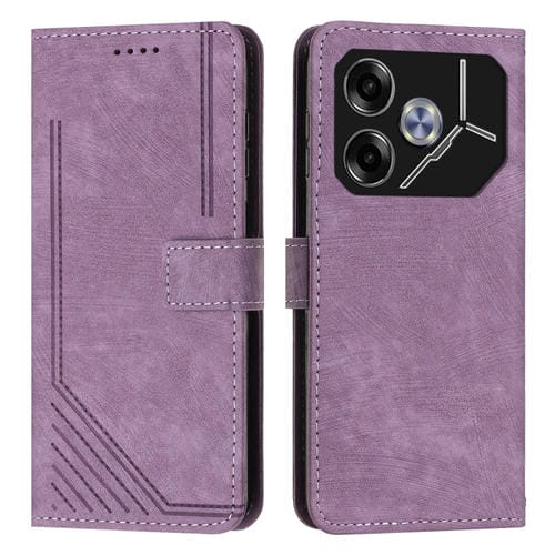 Funda de Cuero para Tecno Pova 6 con Patrón de Rayas y Cordón Largo (Púrpura)