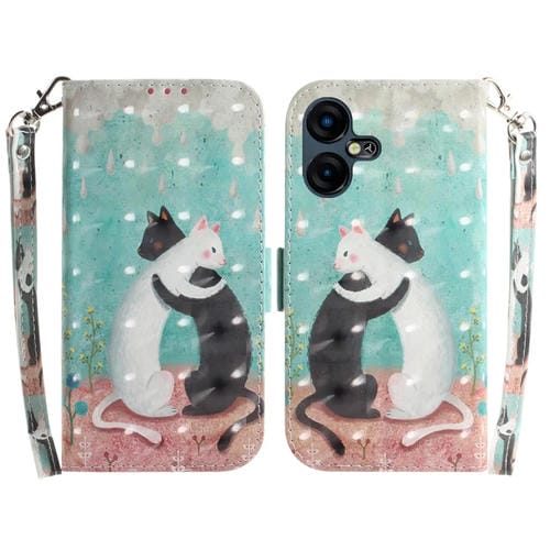 Funda de Cuero para Tecno Pova Neo 3 con Tapa Horizontal y Diseño 3D (Gato Blanco y Negro)