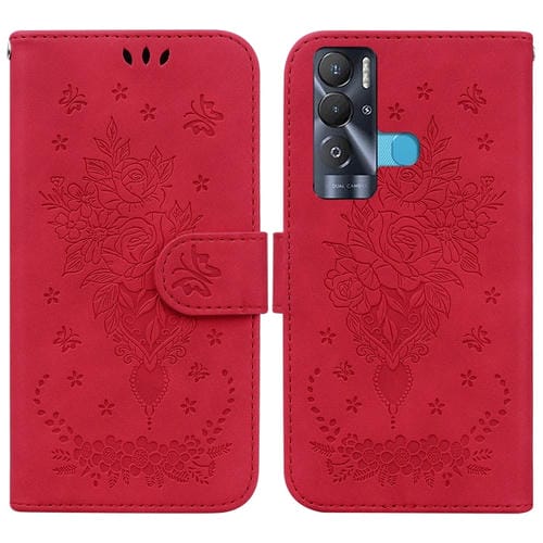 Funda para Tecno Pova Neo Butterfly Rose Foothip en Relieve de Cuero (Rojo)
