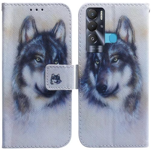 Funda de Cuero para Tecno Pova Neo Le6 con Dibujo Lobo Blanco