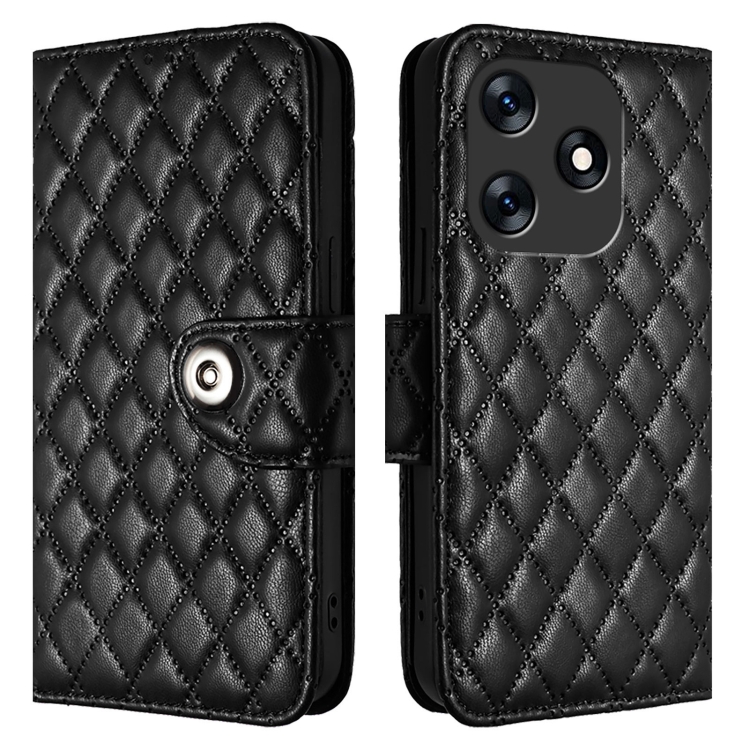 Funda de Cuero con Tapa para Tecno Spark 10 4G con Textura Romboidal y Cordón (Negro)