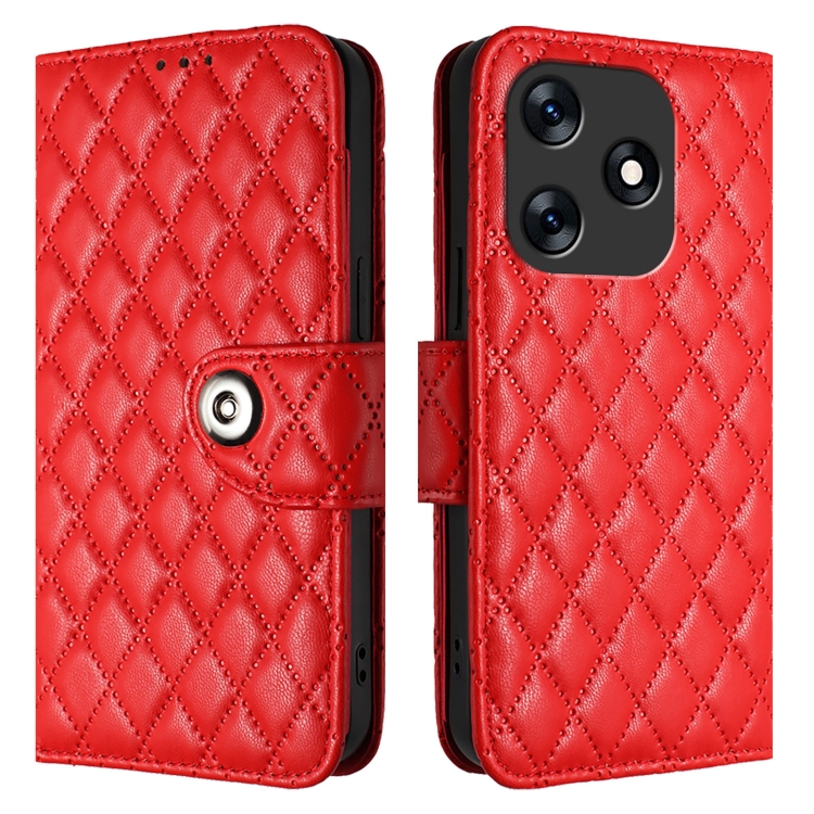 Funda de Cuero para Tecno Spark 10 4G con Tapa Textura Romboidal y Cordón (Rojo)