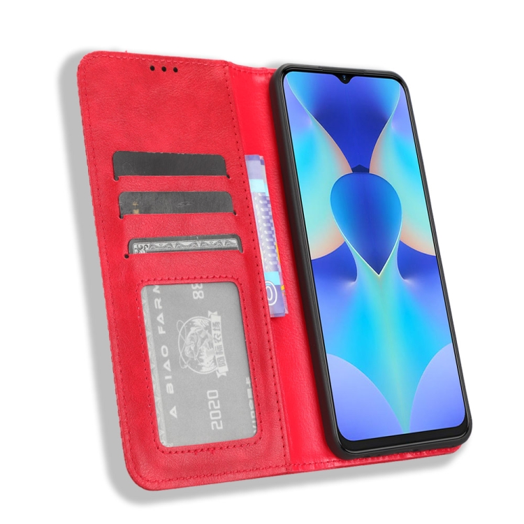 Funda de Cuero para Tecno Spark 10 4G con Hebilla Magnética y Textura Retro (Rojo)