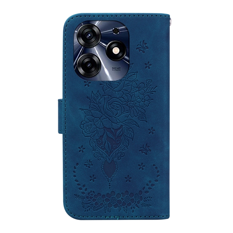 Estuche para Tecno Spark 10 Pro Butterfly Rose de Cuero en Relieve (Azul)