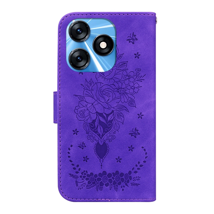 Estuche para Tecno Spark 10 y Spark 10C Butterfly Rose Cuero En Relieve (Púrpura)