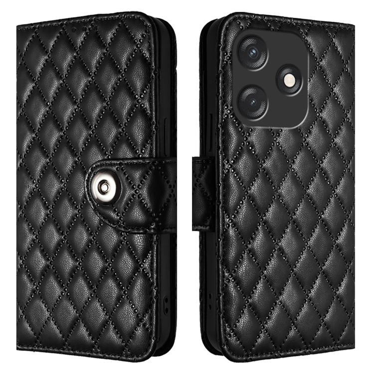 Funda de Cuero para Tecno Spark 10C con Tapa Textura Romboidal y Cordón (Negro)