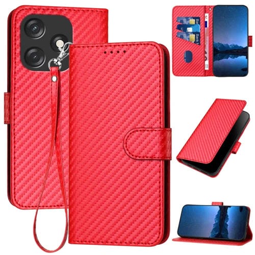 Funda de Cuero para Tecno Spark 10C Yx0070 con Hebilla de Fibra de Carbono y Cordón (Rojo)