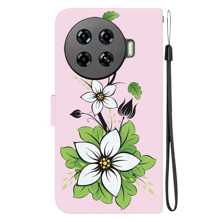 Funda de Cuero para Tecno Spark 20 Pro+ 4G con Dibujo Coloreado y Textura de Cristal (Lirio)
