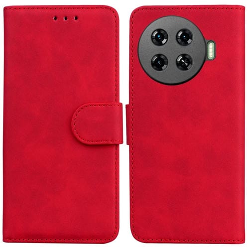 Funda de Cuero con Tapa para Tecno Spark 20 Pro 4G Skin Feel Pure Color (Rojo)