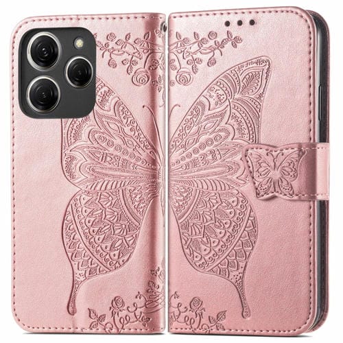 Funda de Cuero para Tecno Spark 20 Pro Butterfly Love Flower en Relieve (Oro Rosa)