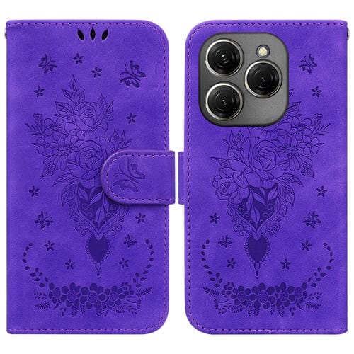 Funda de Cuero para Tecno Spark 20 Pro Butterfly Rose en Relieve (Púrpura)