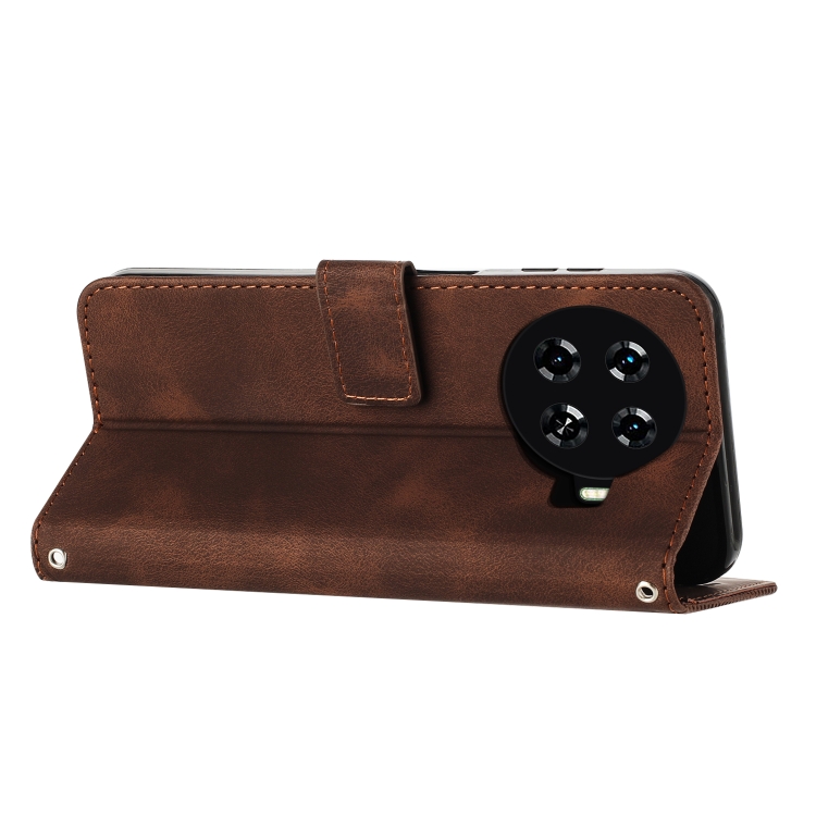 Funda de Cuero para Tecno Spark 20 Pro+ Dream Triangle con Cordón Largo (Marrón)