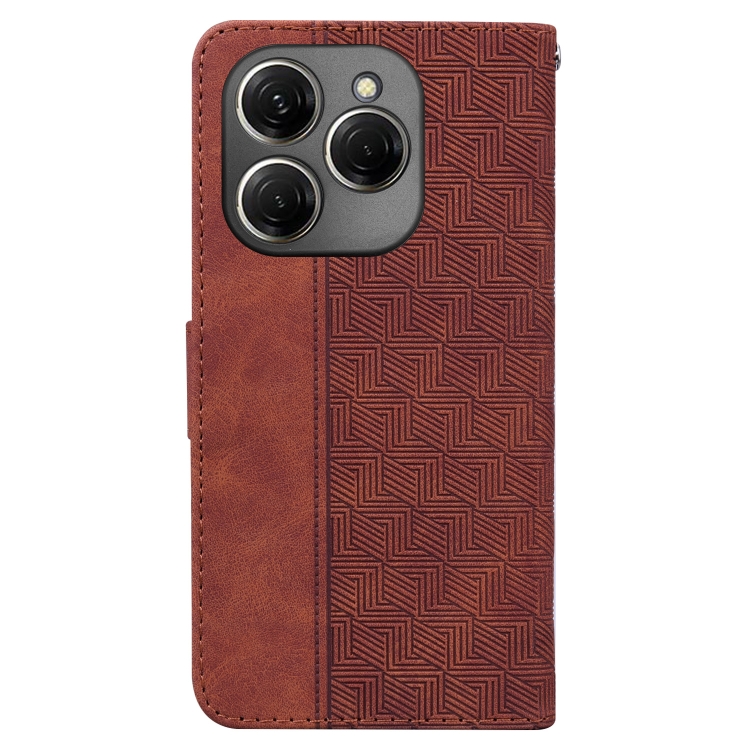 Funda de Cuero para Tecno Spark 20 Pro con Relieve Geométrico (Marrón)