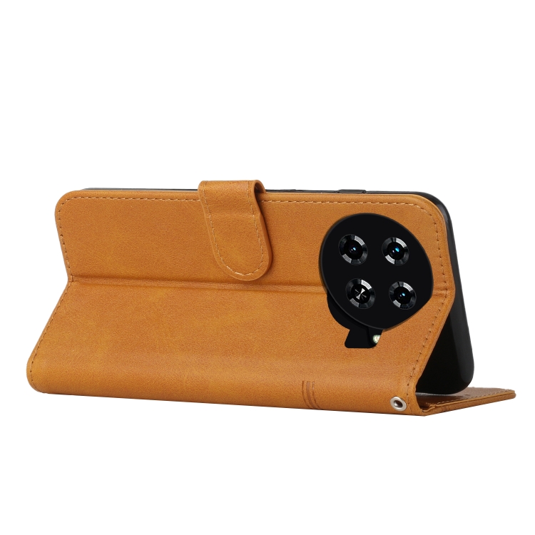Funda para Tecno Spark 20 Pro de Cuero con Hebilla y Textura de Becerro (Amarillo)